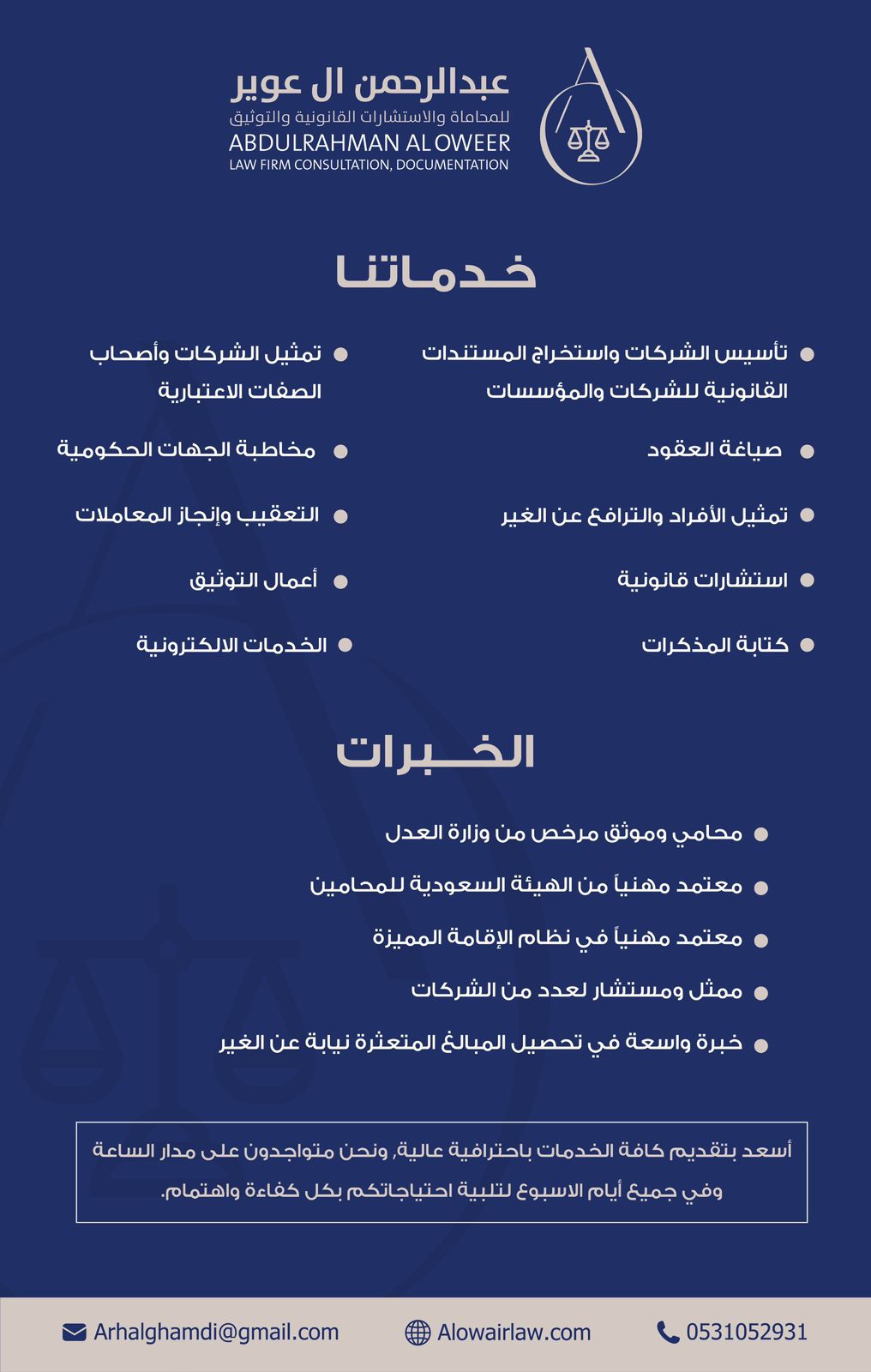 عبدالرحمن ال عوير للمحاماة والاستشارات القانونية والتوثيق والتسجيل العيني
